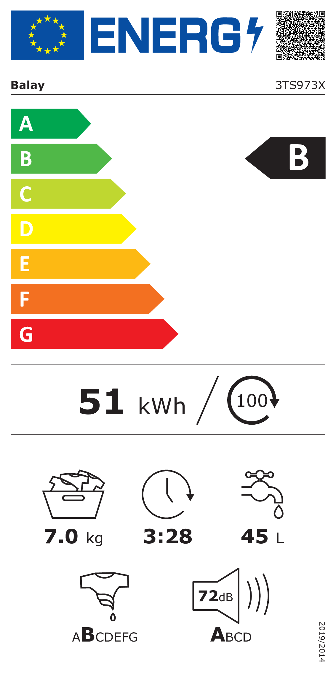 | Funciones: Prelavado, aclarado extra, Selección de temperatura, Reducción de centrifugado. |