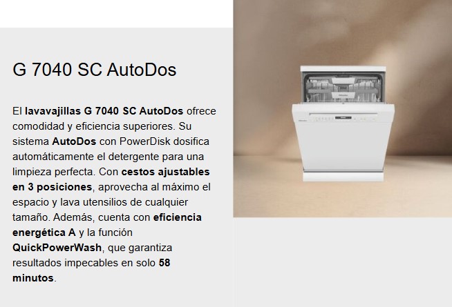 | Lavavajillas | G7040 SC IB BW230 1,9 AutoDos | 1099€ |