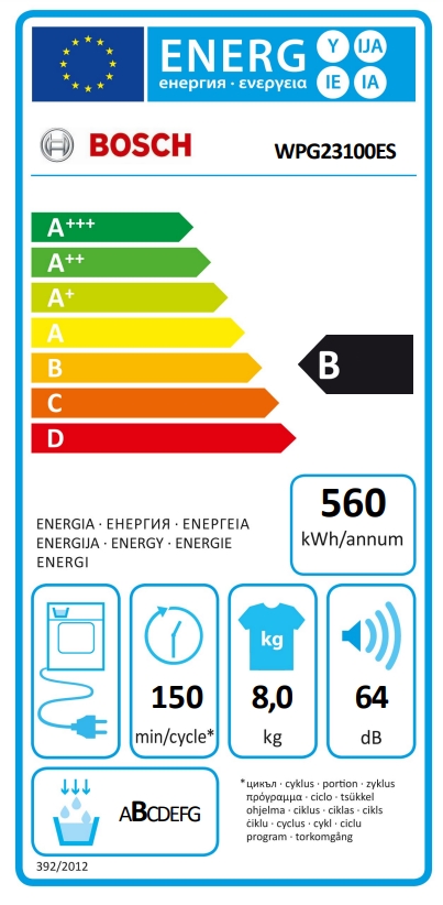 - Clase de eficiencia energética B dentro del rango de A+++ a D