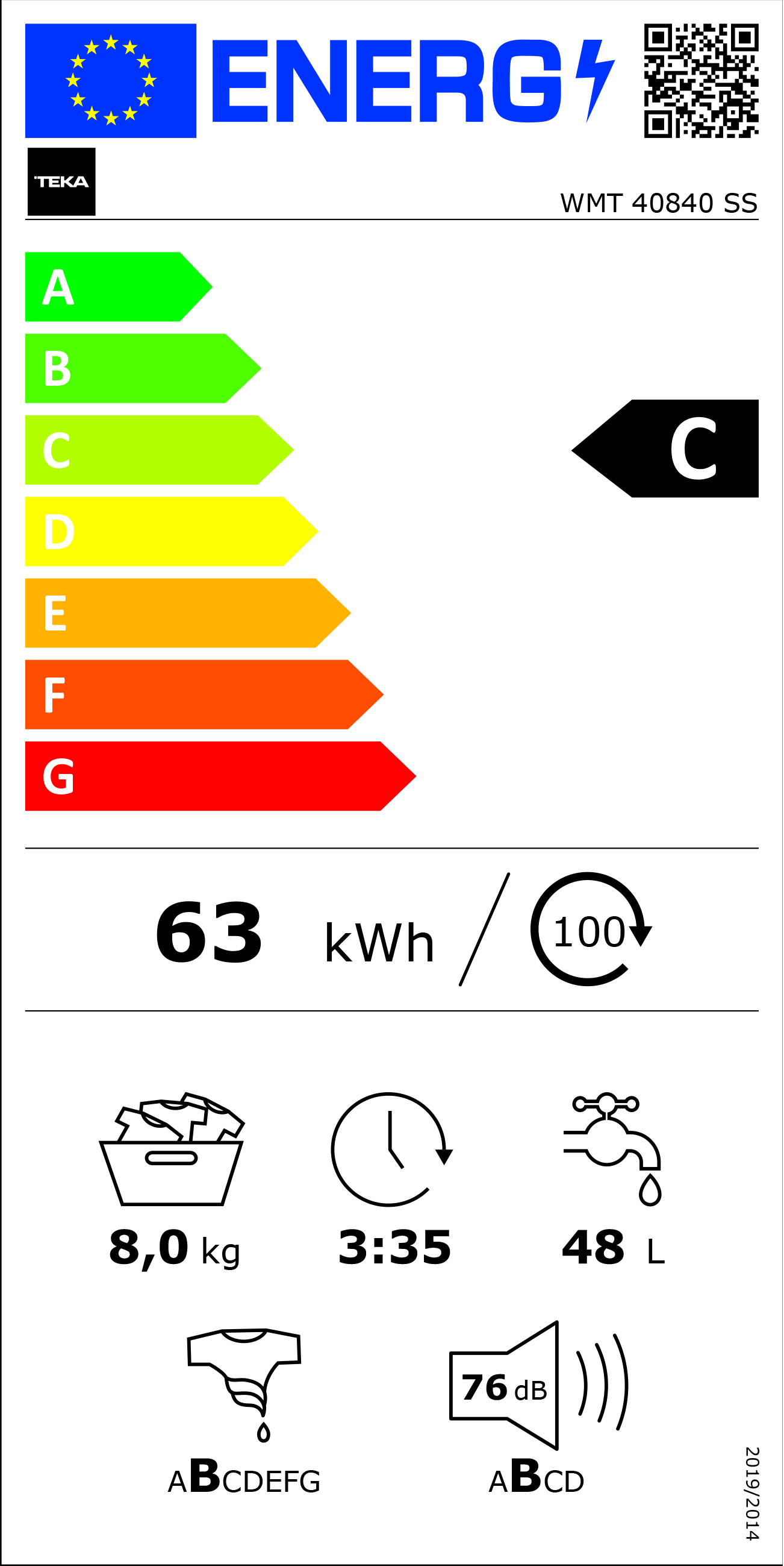TEKA WMT 40840 SS lavadora 8kg inox